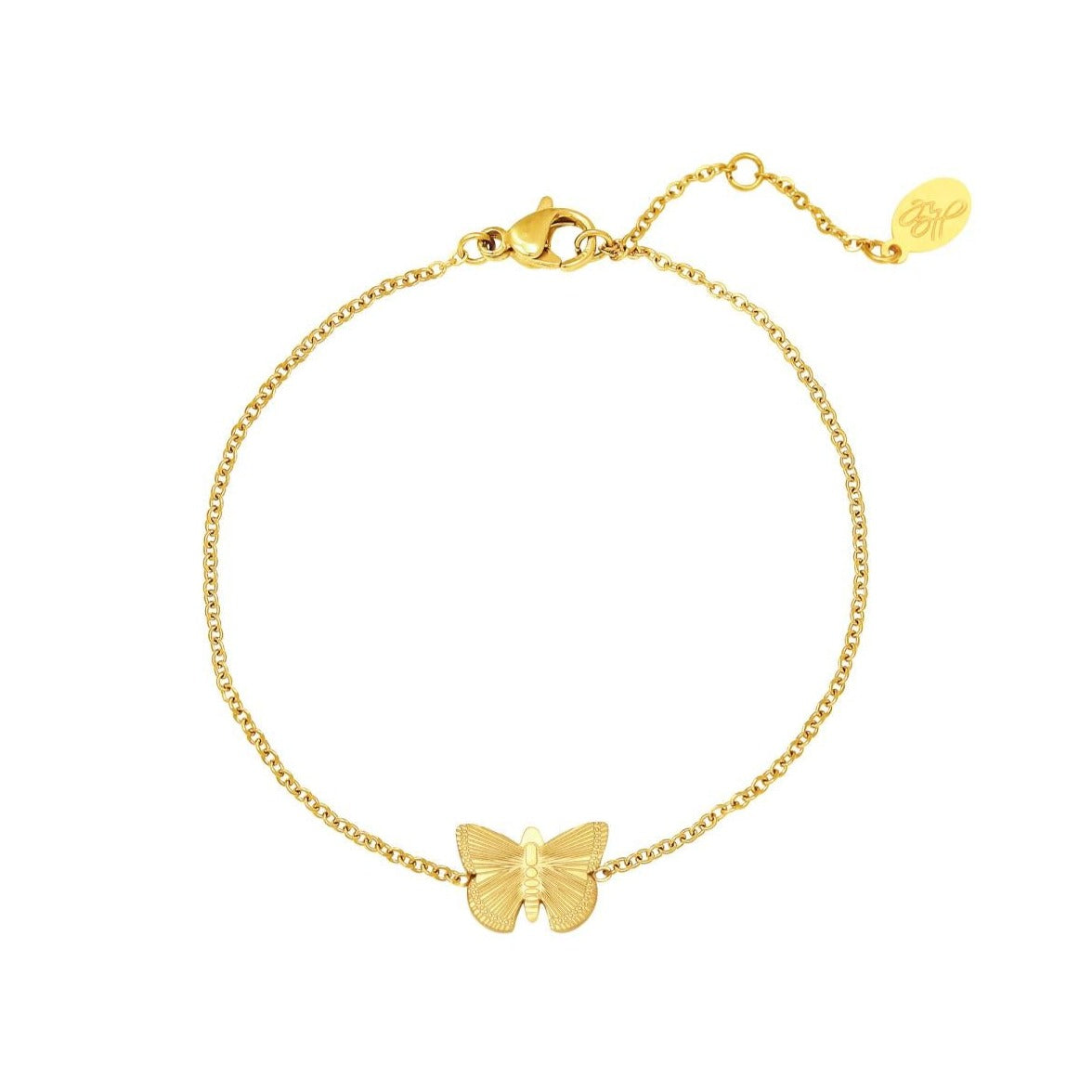 Deze mooie gouden armband heeft een bedel van een vlinder. Leuk om de armband te combineren met andere vlinder sieraden.