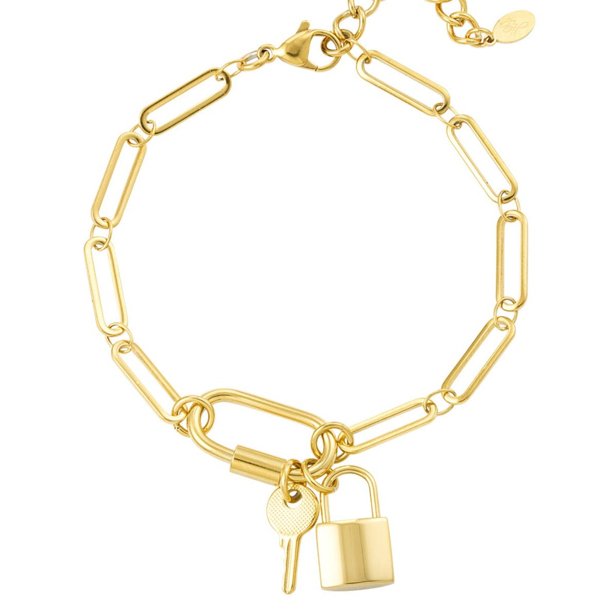 Hoe tof is deze gouden armbanden met bedels in de vorm van een sleutel en slotje! De armband is het perfect te dragen tijdens een chique gelegenheid maar kan ook speels gedragen worden door meerdere armbandjes met elkaar te combineren.