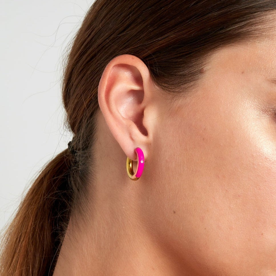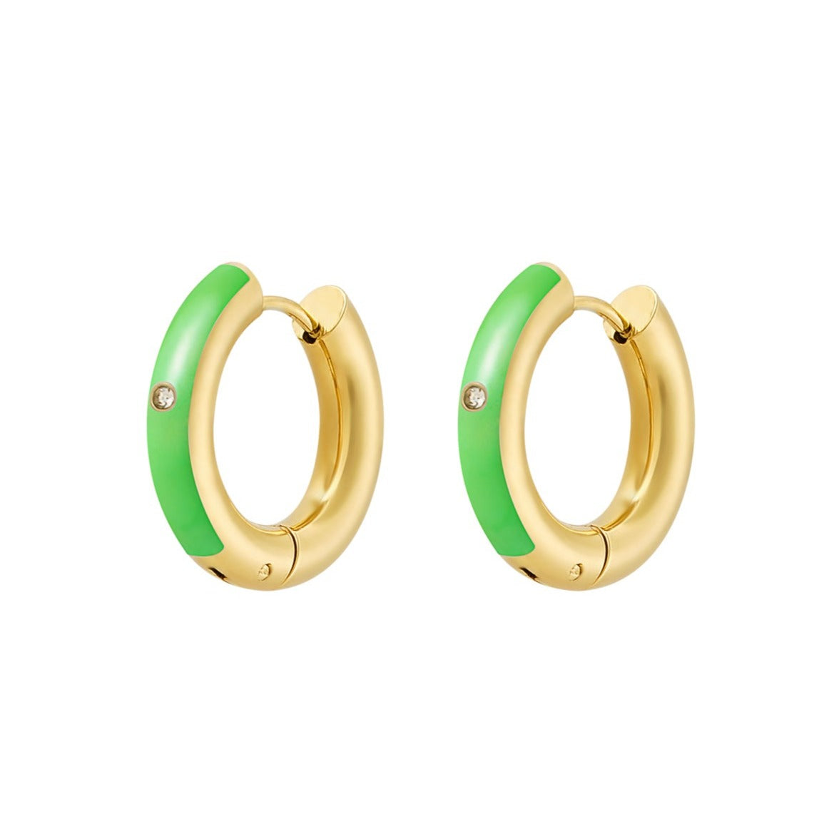 Hoe tof zijn deze kleine gekleurde creolen met een subtiel steentje. Erg trendy en mega leuk te combineren met meerdere kleurrijke sieraden en accessoires.