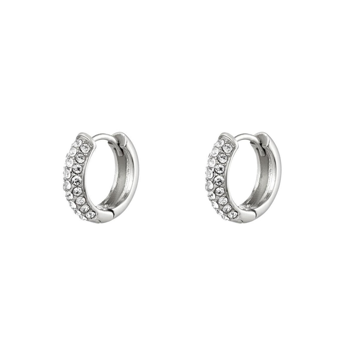 Stijlvolle, minimalistische roestvrijstalen creolen met kleine zirkoonsteentjes.