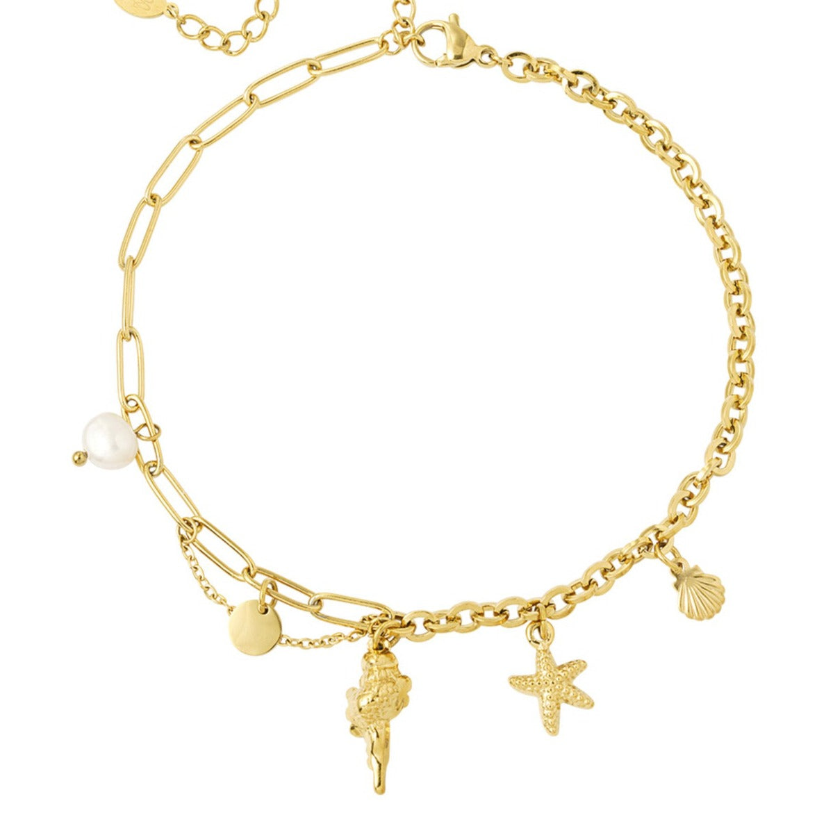 Wauw! Deze prachtige gouden enkelband met zeebedels is toch te leuk! Laat het strandweer maar komen!