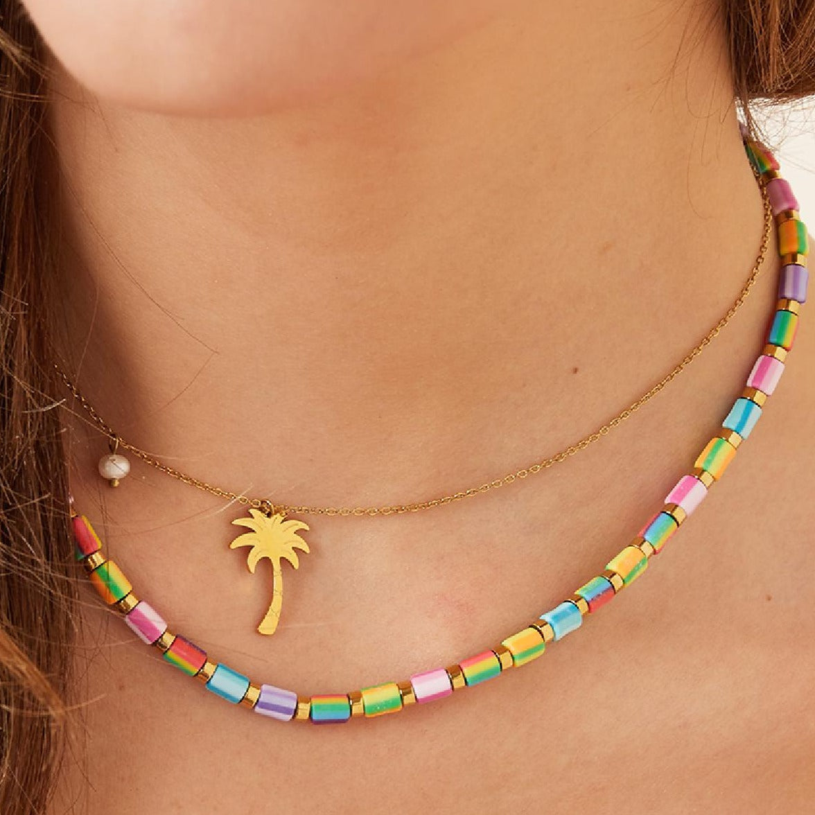 Met deze palmboom ketting kan de zomer beginnen. Ze hebben een leuk parel detail.