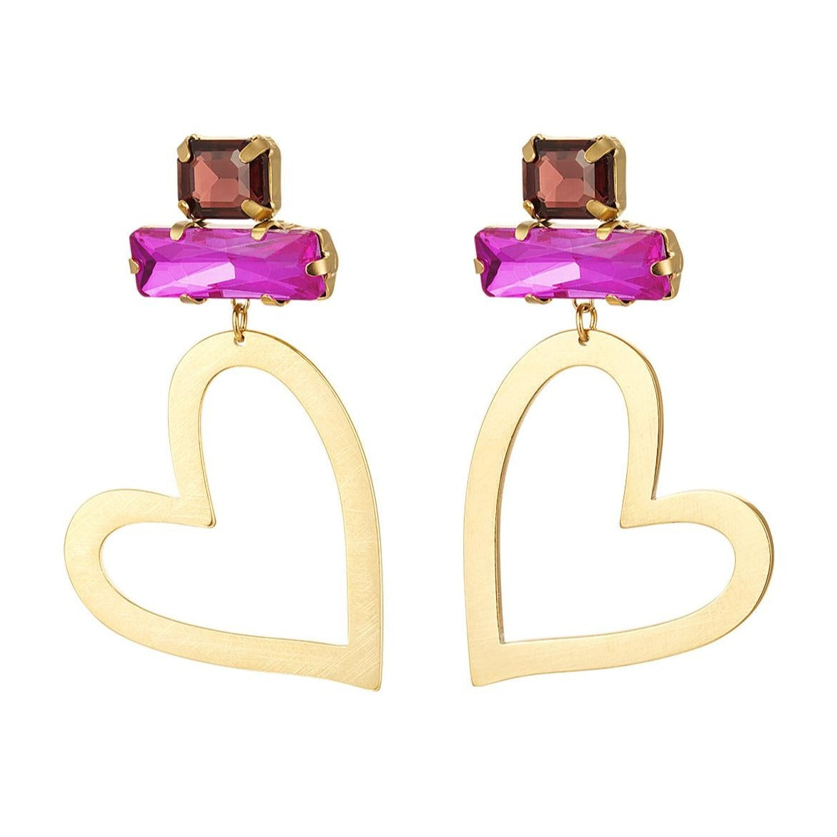 Hoe leuk zijn deze gouden hart oorbellen met roze/rode glaskralen. Superleuk om te combineren met meerdere gouden sieraden of om te combineren met meerdere sieraden met roze details. De oorbellen zijn niet zwaar.