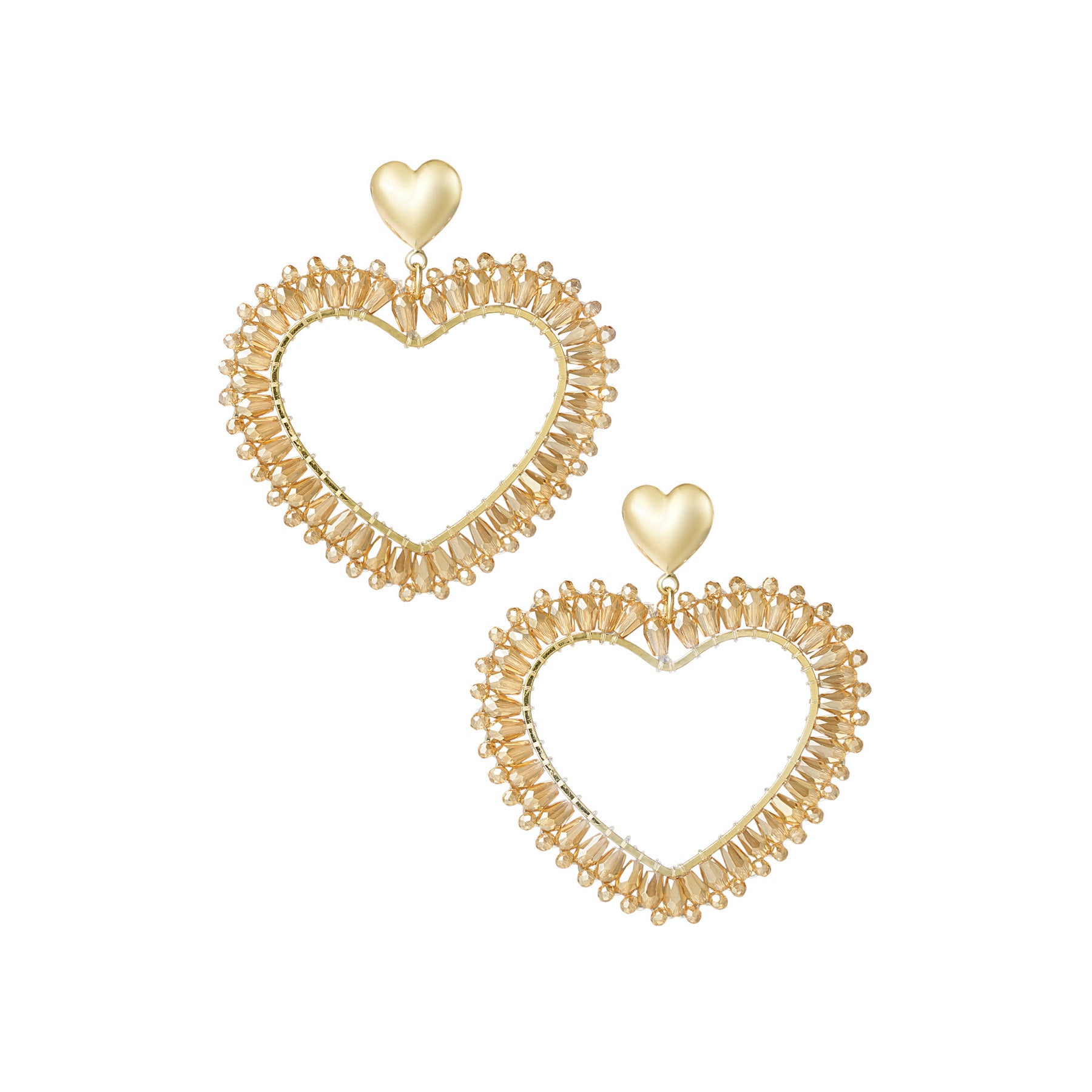 Hoe leuk zijn deze gekleurde oorbellen in de vorm van een hart. De oorbellen zijn gemaakt van koper. De oorbellen hebben een lengte van 5,1 cm en zijn superleuk te dragen met een zomerse look.