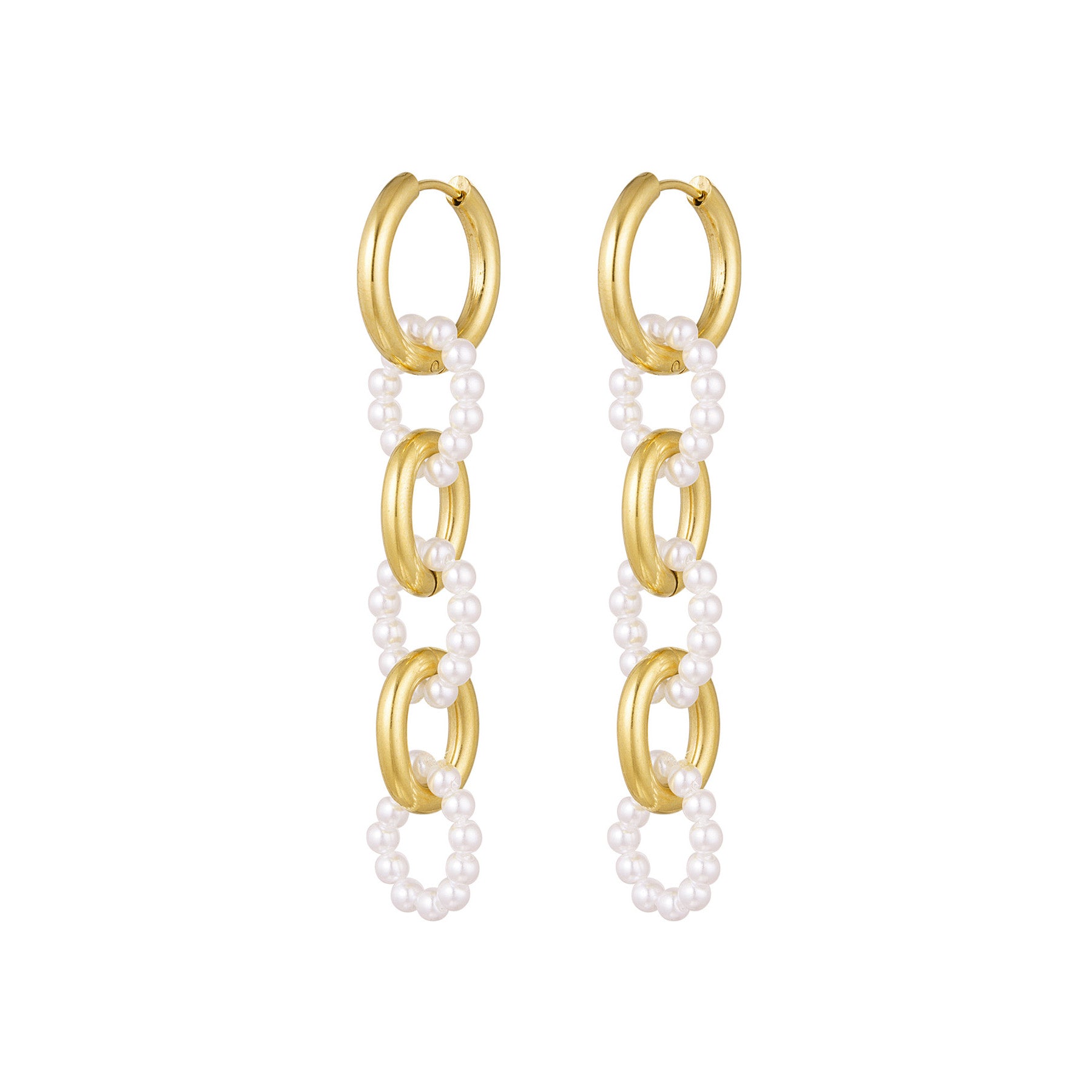 Mooie lange schakeloorbellen met parel details. Leuk voor de zomeravonden.