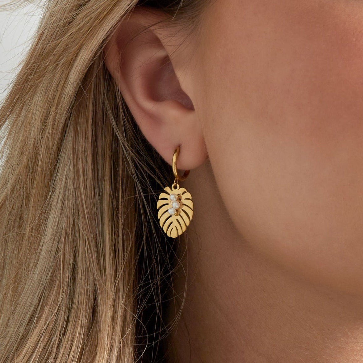 Oorbellen blad met parels