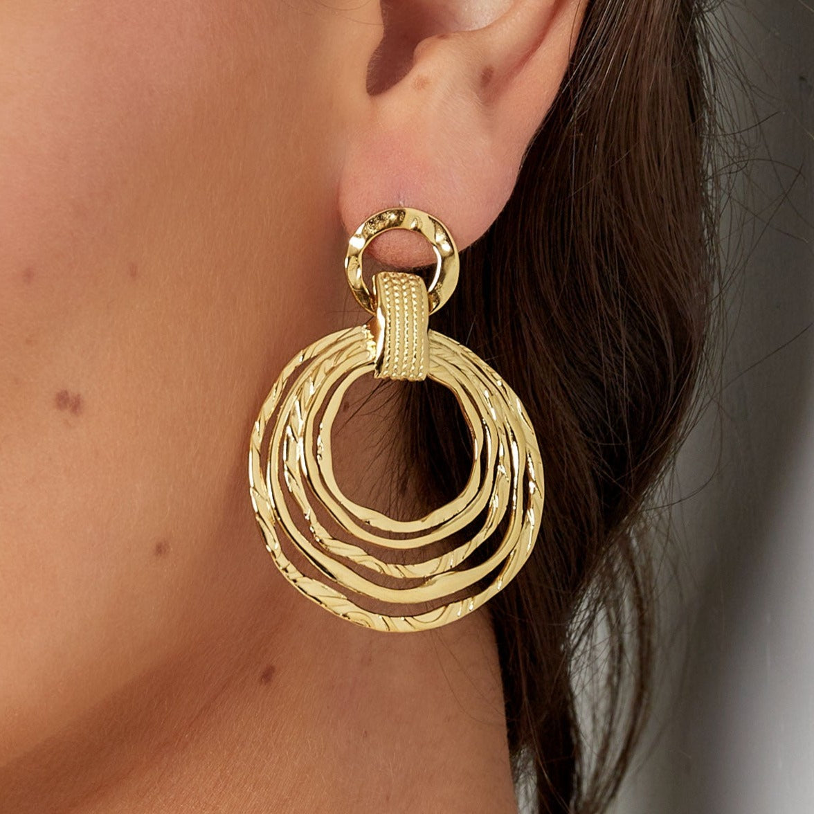 Deze gouden oorbellen met veel cirkels zijn echt iets voor jou! De oorbellen zijn mega trendy en daarnaast perfect te combineren met meerdere matchende oorbellen!