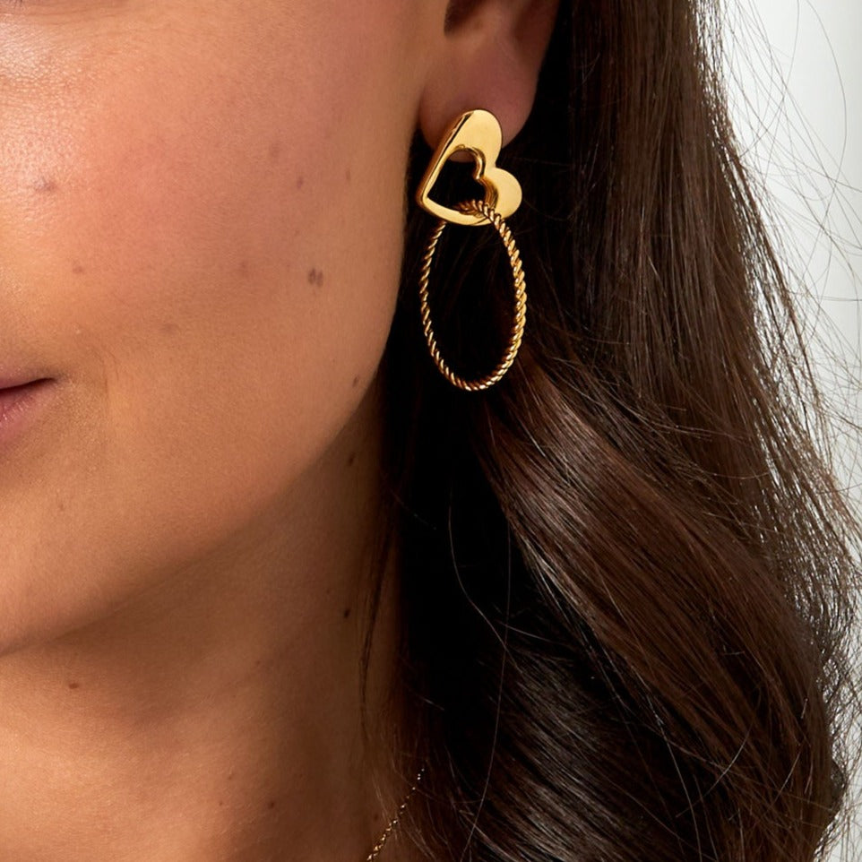Hoe tof zijn deze gouden oorbellen in de vorm van een hartje met gedraaide ring.