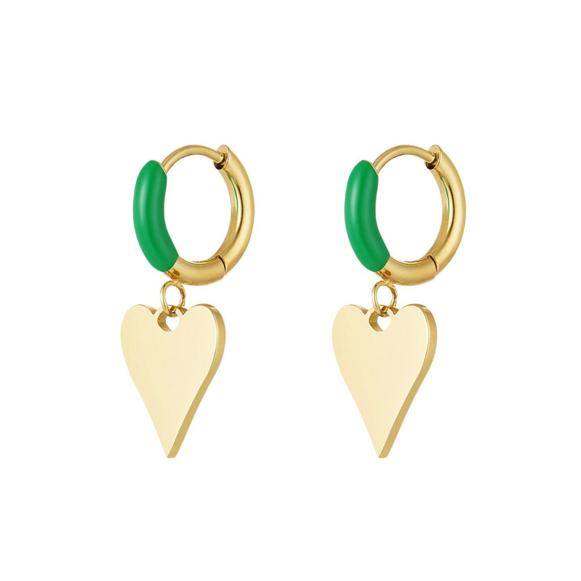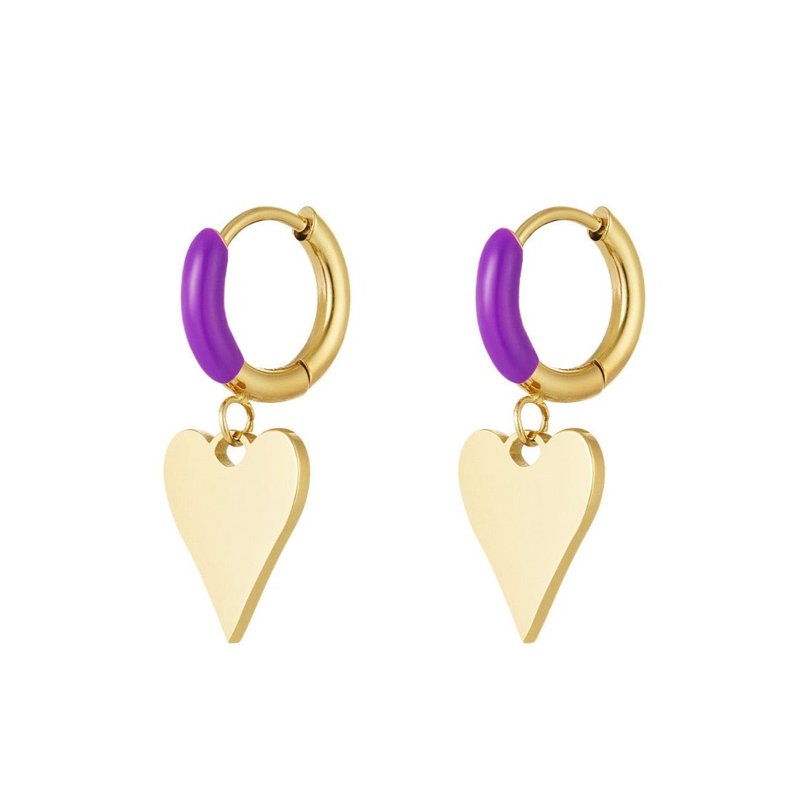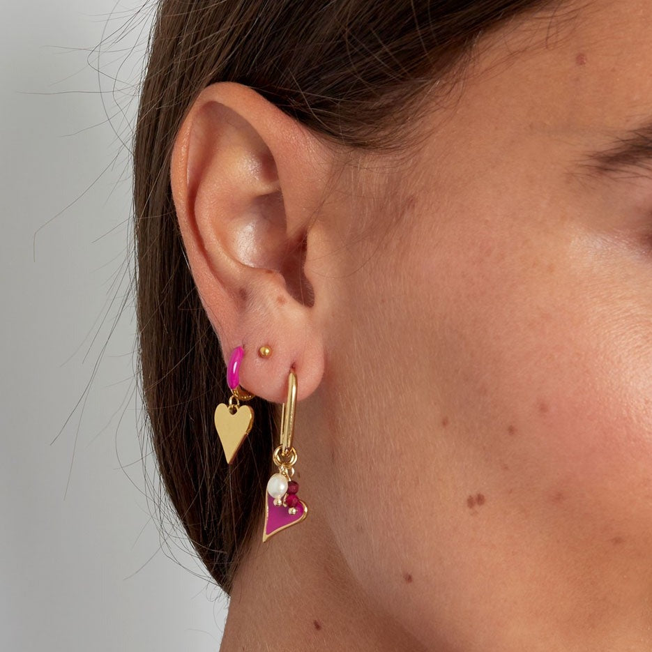 Hoe leuk zijn deze gouden oorbellen met een kleurrijk detail en met bedel in de vorm van een hartje!