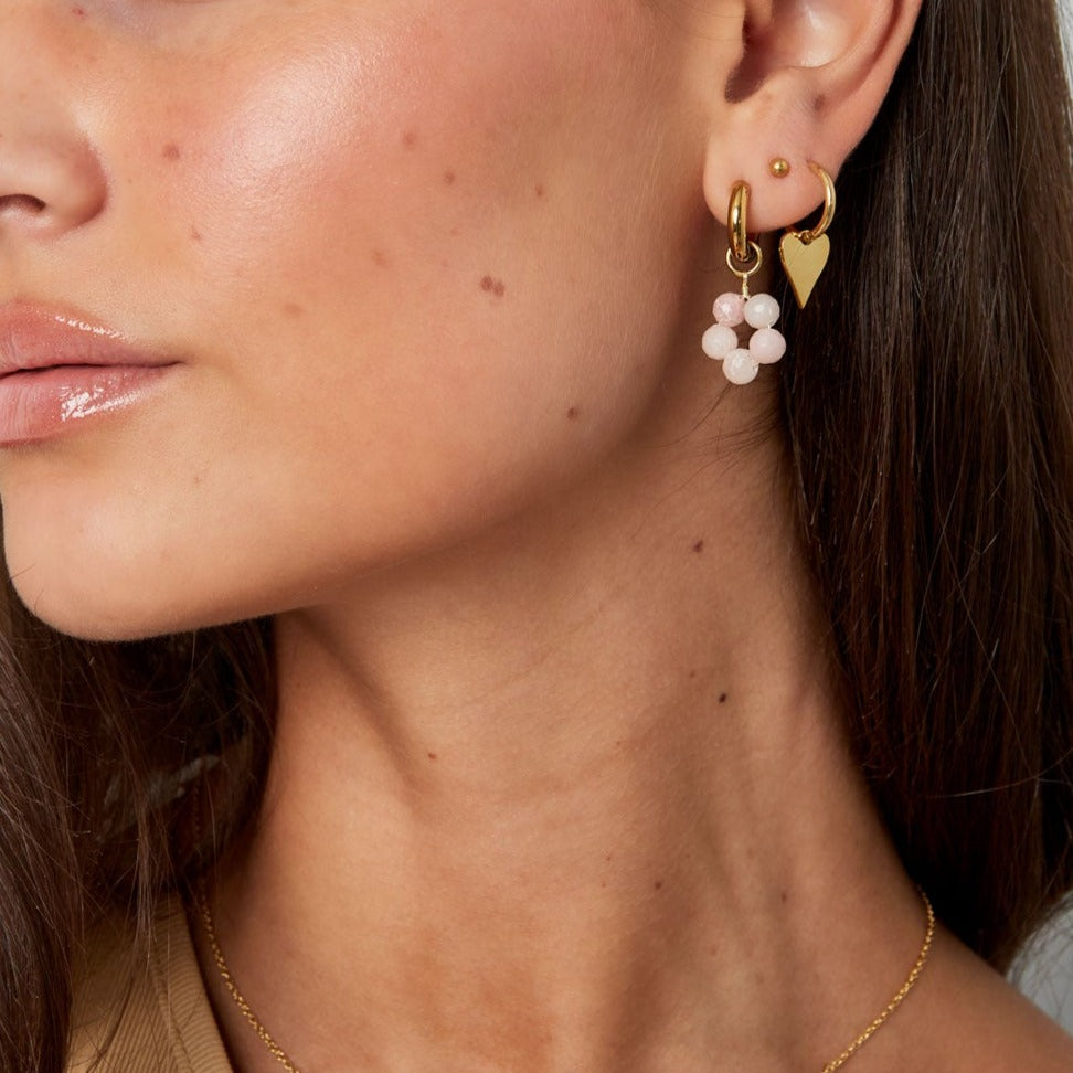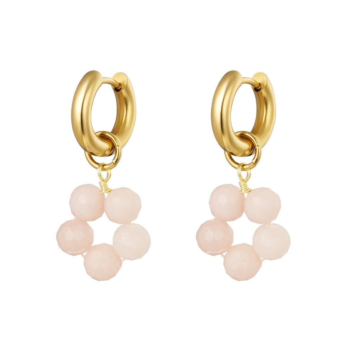 Dit paar gouden oorbellen met een bloem, gemaakt van kraaltjes is trendy en perfect voor de zomerse dagen. Erg leuk om deze oorbellen te combineren met meerdere kleurrijke sieraden en accessoires.