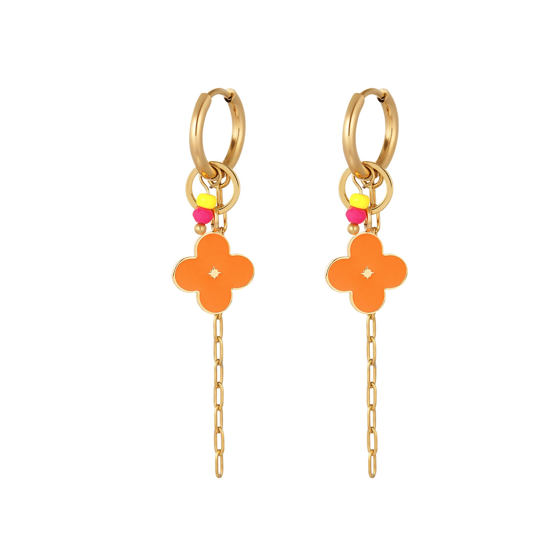 Deze oorbellen met oranje klaver zijn echt een feestje! Maakt elke outfit kleurrijk.