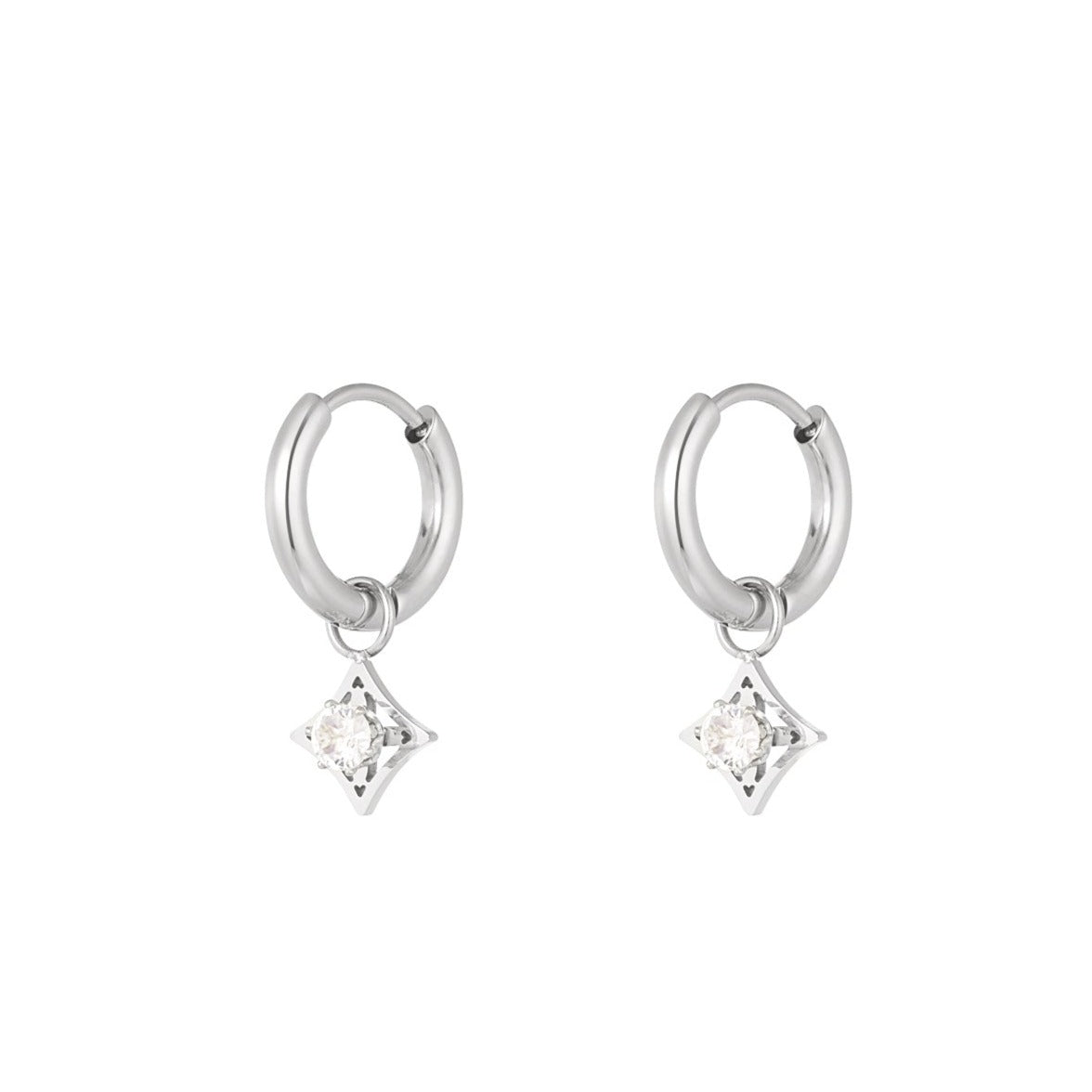 Oorbellen minimalistisch ruitje met steen