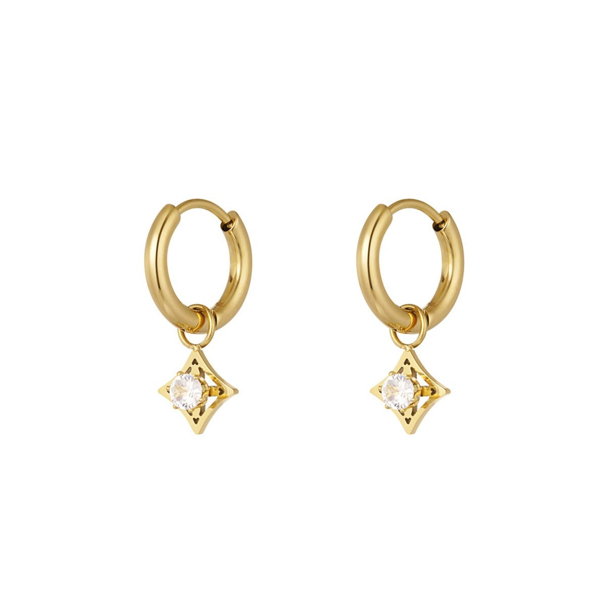 Hoe tof zijn deze gouden minimalistische oorbellen in de vorm van een ruitje met klein steentje! Super trendy en perfect voor een chique look! De oorbellen zijn daarnaast de perfecte oorbellen om te combineren met meerdere sieraden.