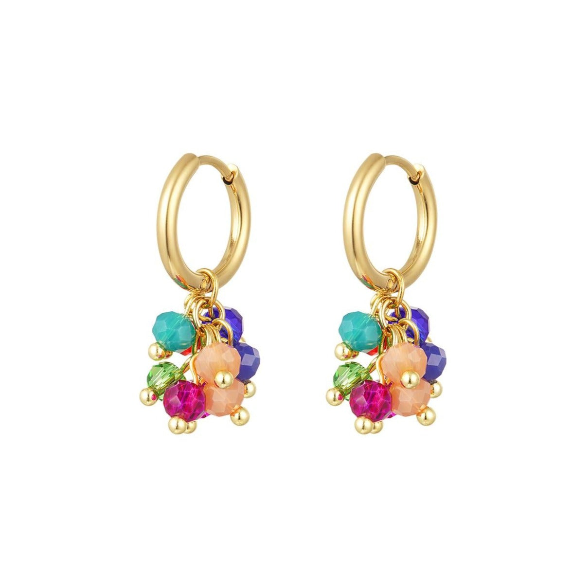 Deze toffe oorbellen met een tros van kristallen multi kraaltjes zijn toch te leuk!